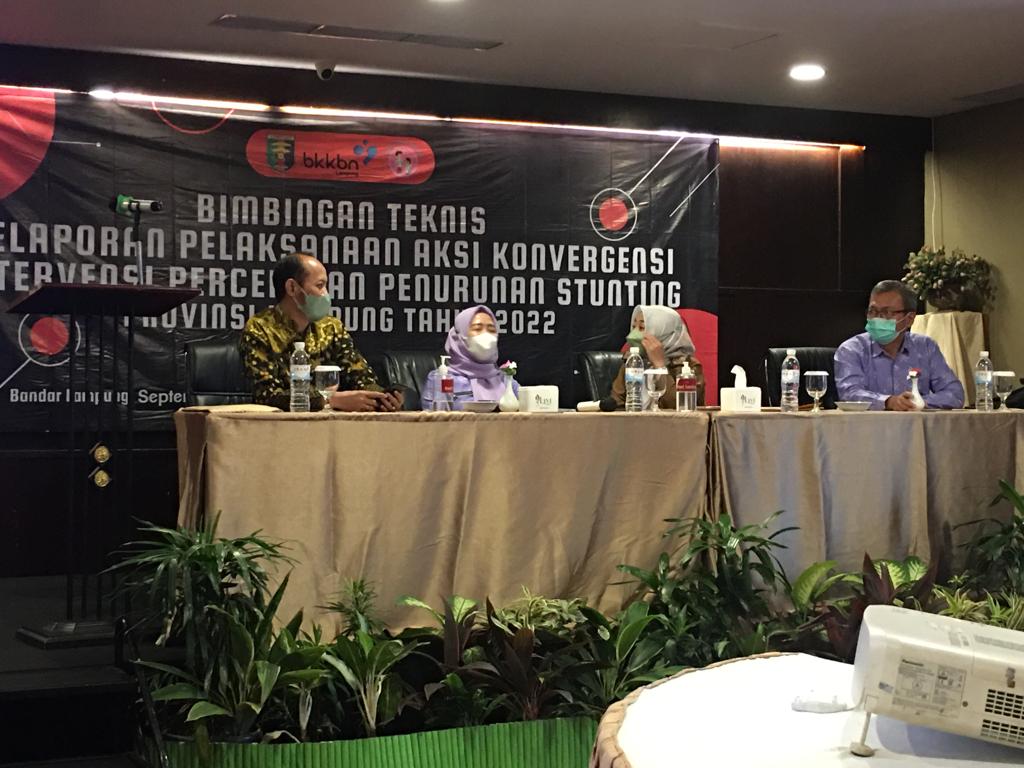 Bandar Lampung - Kepala Dinas Pemberdayaan Perempuan dan perlindungan Anak Provinsi Lampung yang diwakili oleh Kepala Bidang Dalduk dan KB menghadiri kegiatan Bimbingan Teknis Pelaksanaan Aksi Konvergensi Intervensi Penurunan Stunting Provinsi Lampun...